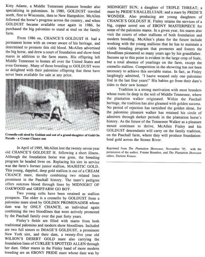mare. Chance's Goldust H. did not have his chance in the show ring after